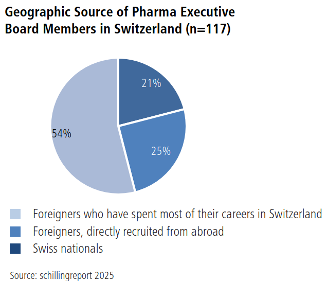 One often overlooked advantage of the Swiss pharma and life sciences sector is its openness to international talent and diverse leadership profiles. Our recent analysis of 13 leading life sciences companies in Switzerland (as featured in the schillingreport 2025) shows: